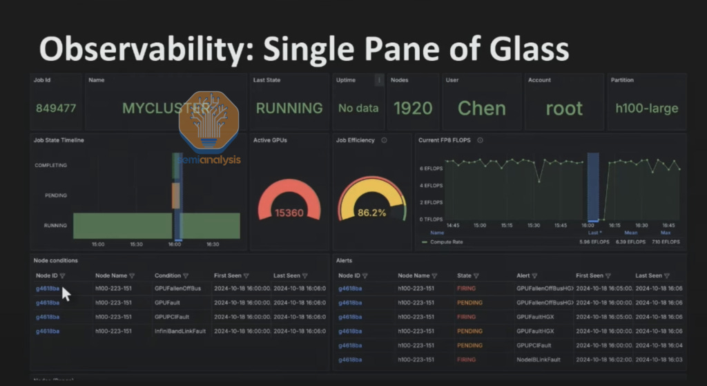 For workload management, Azure offers CycleCloud, a user-friendly, web-based UI for deploying and managing Slurm clusters. CycleCloud includes basic health checks to enhance reliability and operational awareness. We look forward to doing a complete analysis of CycleCloud. However, compared to more advanced offerings like CoreWeave’s fully automated active and passive health-checking systems, Azure’s solution has room for improvement. We specifically recommend that Azure consider adopting practices similar to CoreWeave's comprehensive approach, such as regular automated checks (including NCCL tests, ib_write_bw, and DCGM diagnostics), as well as automated node draining and replacement to improve overall reliability.