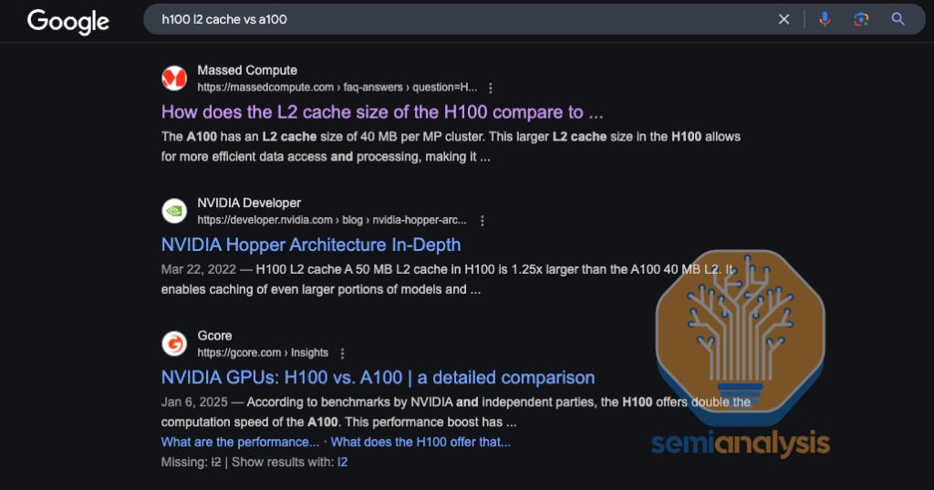 For example, when searching for “H100 vs A100 L2 Cache” on Google, the Massed Compute AI generated junk article with incorrect information shows up first. They actively are spreading misleading information, which is a horrible starting point for a GPU provider.