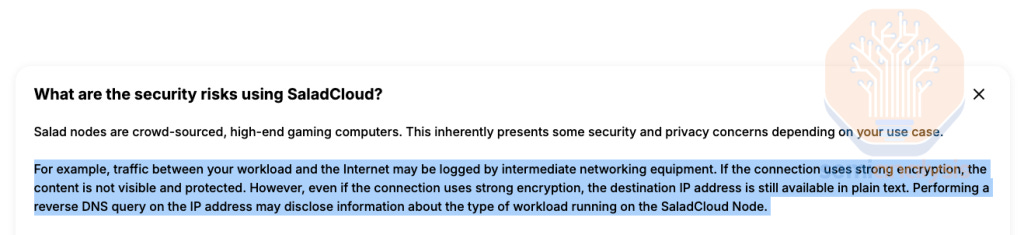 Some GPU Providers in this category even admit on their public website that there may be security and privacy concerns, and traffic between the GPU servers and the internet may be heavily logged by a 3rd parties networking equipment.