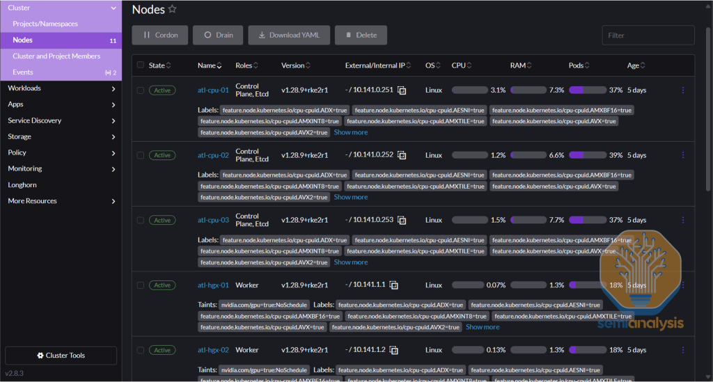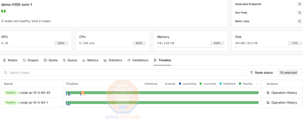 In the LeptonAI platform, you can view the node lifecycle in their console dashboard and see what jobs and state each node is in. They have superior node lifecycle visualization, and the only company that has a better node lifecycle dashboard is CoreWeave.