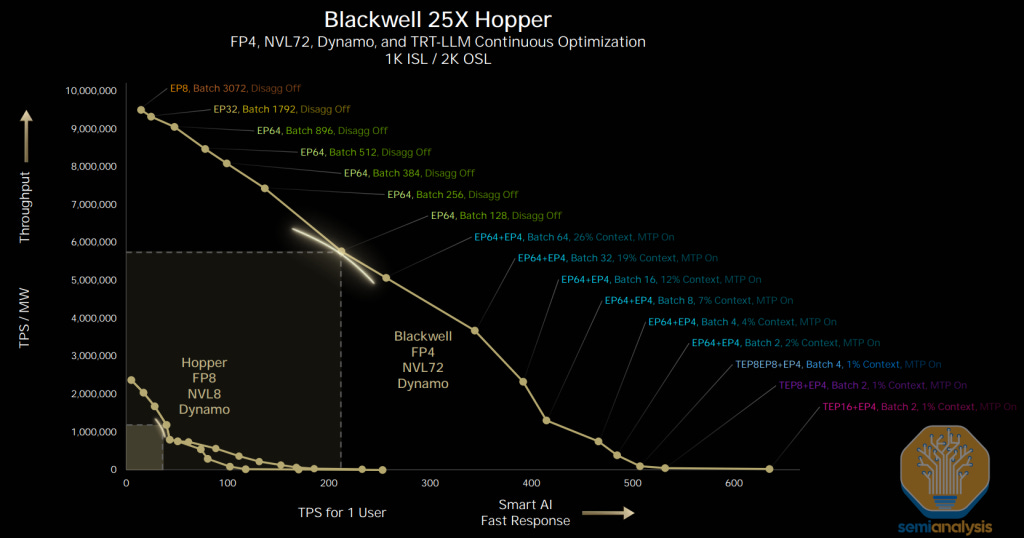 The dynamic of increasing availability of systems with far lower cost of compute that drives the overall cost of compute in terms of $/M tokens and $ per effective PFLOP lower, in turn dragging rental prices for older cards down as well.