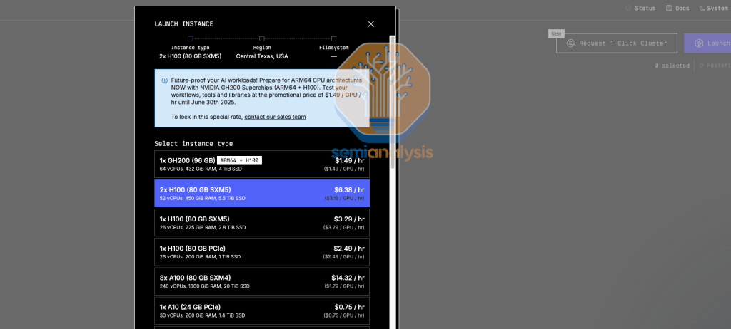Users have also expressed interest in broader base image choices beyond the standard Lambda stack base image for their on demand offering. Lots of users and SemiAnalysis's own testing have shown that the on-demand instance boot times are excessively long, typically around 30 minutes. For comparison, Crusoe’s H100 SXM instance offers a boot up in less than 90 seconds. This should be the bar that Lambda Labs aims for. Additionally, Lambda's default on-demand instances incorrectly set the CUDA toolkit and CLI tool paths to /usr/bin/nvcc instead of the industry-standard /usr/local/cuda/bin/nvcc, causing compatibility issues with many open-source repositories. We have spoken with the team at Lambda Labs, and they are committed to reducing the boot time of their on-demand instances.