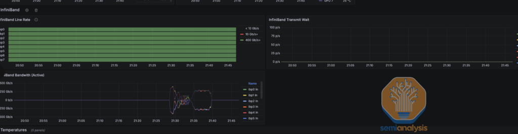 Furthermore, Scaleway does not provide basic Grafana dashboards for monitoring GPU metrics such as temperature and SM activity. Implementing these dashboards would offer valuable insights into system performance. Encouragingly, Scaleway has been receptive to customer and SemiAnalysis feedback, actively seeking to address these gaps and enhance their offerings.