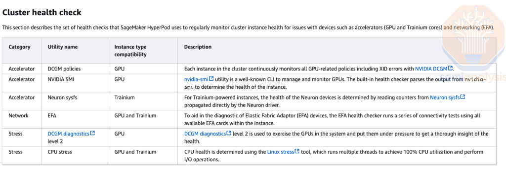 To enhance their service further, AWS should continue investing in networking improvements and consider having as a default for out-of-the-box or simple checkbox for end customers to opt into advanced passive and active automated weekly scheduled health check strategies akin to those utilized by CoreWeave.