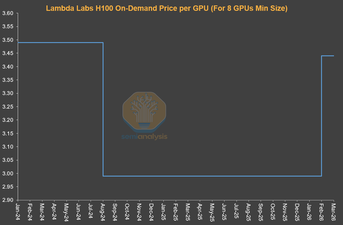 There is no guarantee that buyers of compute are actually transacting at prices publicly posted by Hyperscalers and Neoclouds. These posted prices may shift around, giving a helpful directional signal for how GPU rental prices are trending but look at these shifts cannot provide an accurate estimate for actual transaction prices. Often times, these publicly posted prices only adjust after the contract market has shifted, lagging actual trends in compute demand. In particular, the on-demand operates by fixing price at a constant level with take-up rates or utilization rates the variable. This pricing is only adjusted on an ad-hoc basis as needed. More on how this market operates later in the article.