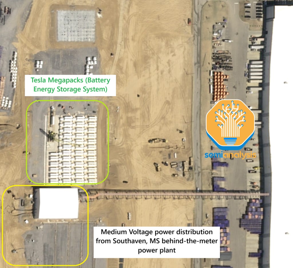 To transport and manage power generated by the Mississippi power plant, xAI is building infrastructure near Colossus 2. We show below the first deployment of Tesla Megapacks, as well as the Medium Voltage power lines connecting the two sites.