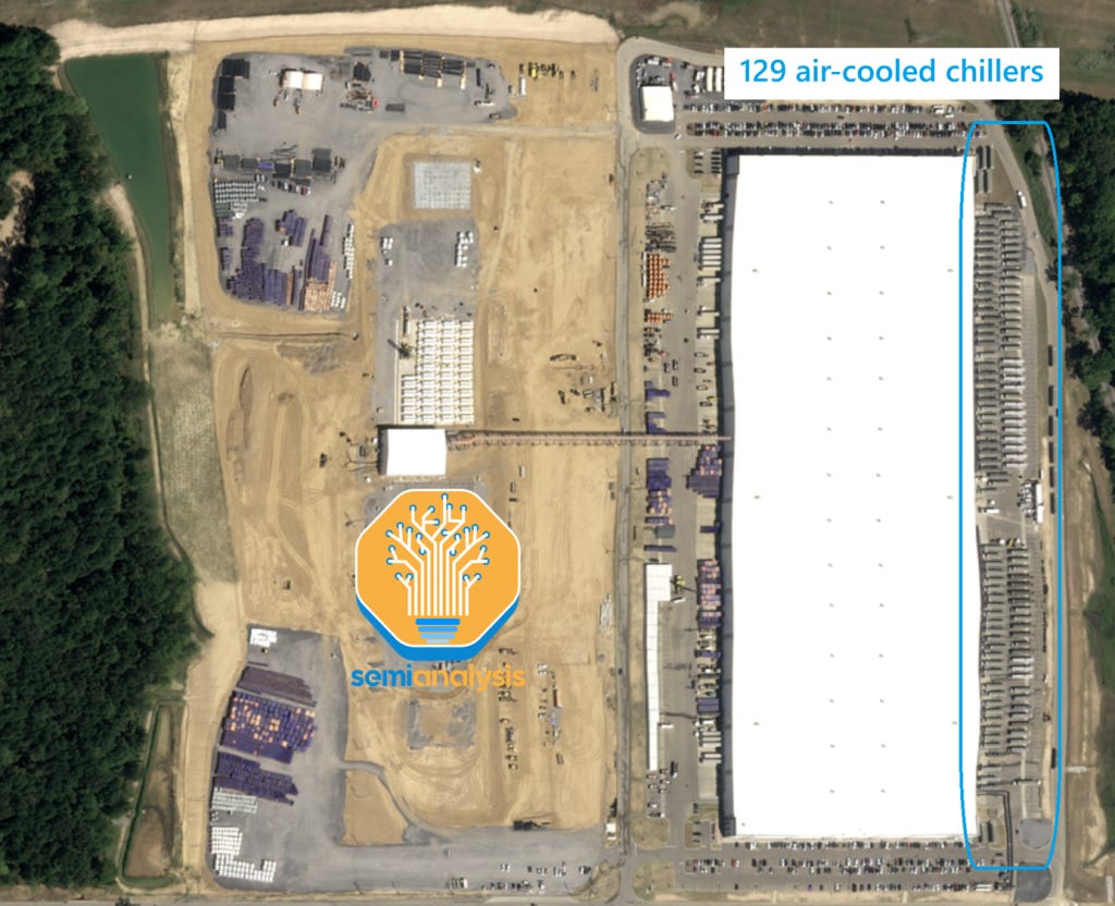 The Colossus 2 project was kicked off on March 7th, 2025, when xAI acquired a 1m sqft warehouse in Memphis, and two adjacent sites totaling 100 acres. By August 22nd, 2025, we count 119 air-cooled chillers on site, i.e. roughly 200MW of cooling capacity. That's enough to power roughly 110k GB200 NVL72. And an Elon tweet shows some racks were already installed in July.